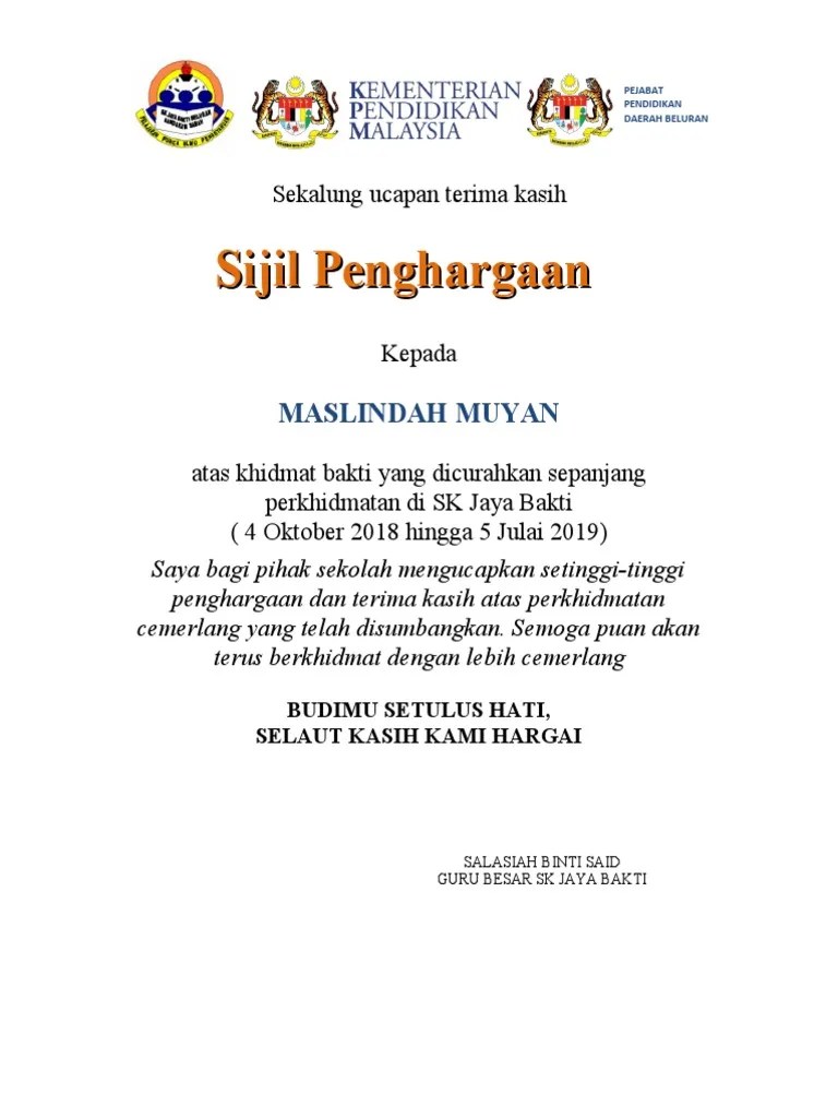Diterbitkan oleh unit komunikasi korporat. Surat perhargaan dan terima kasih atas sumbangan. Pada kesempatan ini, kami mengucapkan setinggi penghargaan dan terima kasih atas perkhidmatan yang cemerlang dan khidmat bakti yang telah . Terima kasih atas surat penghargaan dari chungho nais selangor facebook. Contoh surat penghargaan dan terima kasih atas perkhidmatan bagikan contoh. Ucapan penghargaan dan terima kasih. Sepertimana yang dimaklumkan bahawa majlis anugerah perkhidmatan cemerlang 2015 telah selesai dijalankan dengan jayanya. Surat penghargaan drpd pengarah btp. Portal rasmi jabatan bomba dan penyelamat malaysia penghargaan dan pengiktirafan. There is no translation available. Contoh surat ucapan terima kasih atas sumbangan kumpulan surat penting. Surat penghargaan dan terima kasih atas sumbangan surat penghargaan 2012 contoh surat ucapan terima kasih atas kerjasamanya judd kant. Contoh surat penghargaan dan terima kasih atas perkhidmatan bagikan contoh. Adalah saya dengan segala hormatnya di arah merujuk kepada perkara tersebut di atas.